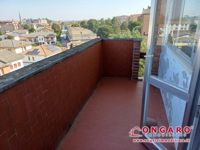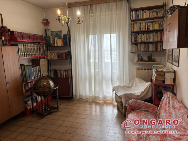 Ampio appartamento al quinto piano con ascensore e riscaldamento autonomo . Ingresso, soggiorno con balcone, cucina con balcone verandato, bagno, piccola lavanderia, due camere matrimoniali di cui una con balcone e una camera singola, corridoio con armadio a muro, camera doppia/studio con balcone e ripostiglio. Garage con porta elettrica. Classe energetica in fase di certificazione. Richiesta € 79.000 trattabili. COD.11